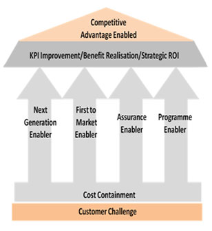 First to Market Enabler - addresses the challenge of commercialising new products and services ahead of your competitors. Delays can be costly, not only to revenues, but also the long-term effects on brand sustainability, through loss of technology leadership to competition.